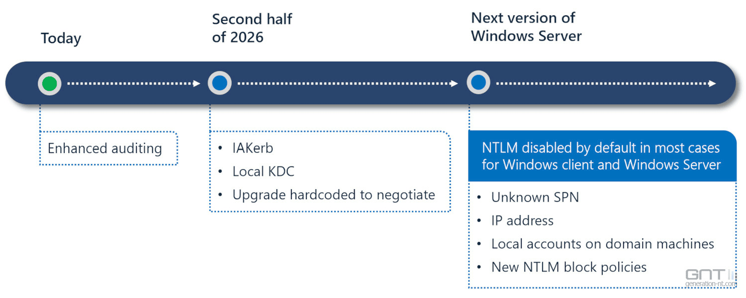 La dernière phase du plan de Microsoft est la dépréciation et la suppression complète de NTLM. Cette étape finale vise à éliminer définitivement NTLM des environnements informatiques. Microsoft prévoit de retirer progressivement le support de NTLM dans ses produits et services.