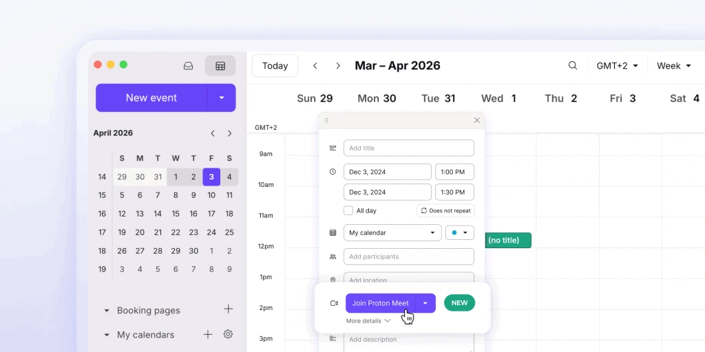De plus, Proton Meet intègre des fonctionnalités de gestion de réunion, comme la planification facile via un calendrier intégré, la possibilité d’enregistrer des réunions, et des options de personnalisation pour répondre aux besoins spécifiques des utilisateurs.